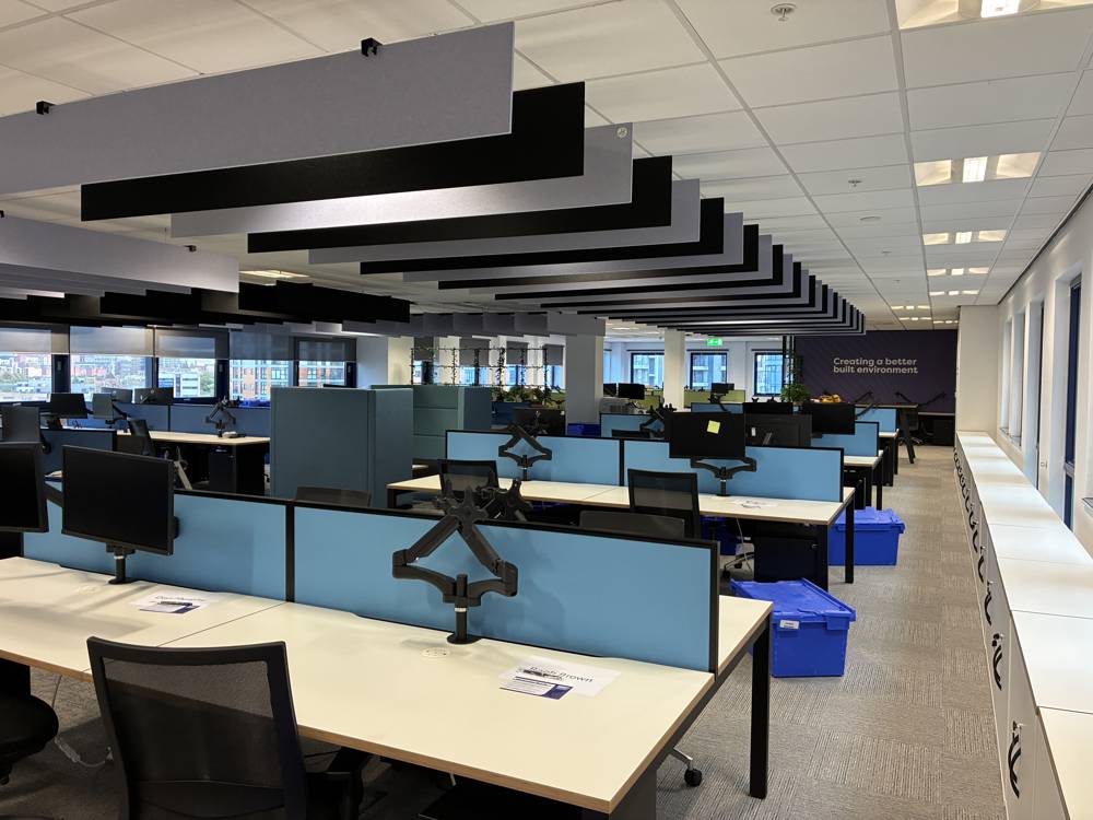 In the main open-plan office, functionality was key. Porta Bench Desks were specially tailored to the client’s requirements, arranged in 4-person double bench clusters. Each workstation is equipped with high privacy screens, integrated power modules, and monitor arms - ensuring every individual has the space, comfort and connectivity they need to perform at their best.