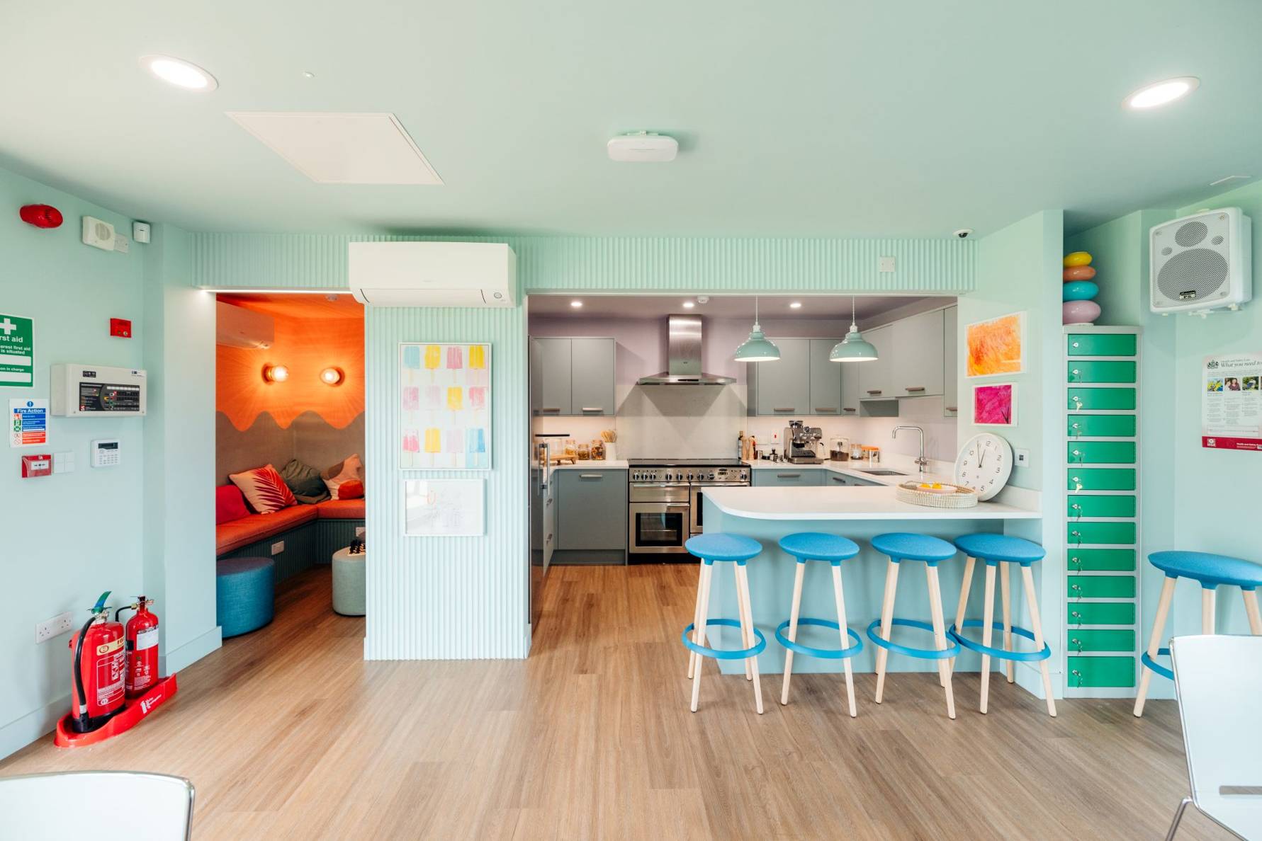 We supplied the Cherry Tree Youth Club with stackable Tulsa chairs and foldable Tilt Tables for the main area as they needed flexibility of use, plus Dayton high stools at the kitchen bar and made-to-measure upholstered seat pads with Austin stools in the snug.